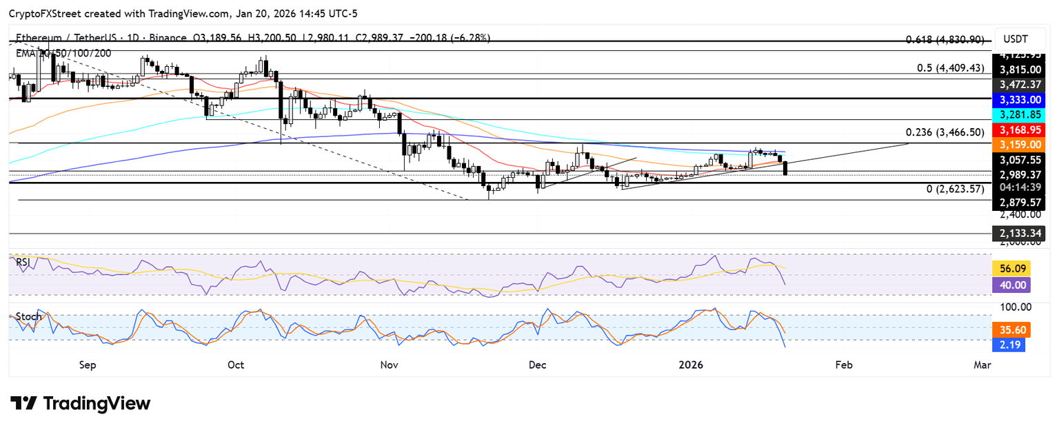 Ethereum Price Forecast: ETH falls below key ascending triangle, eyes $2,880 support