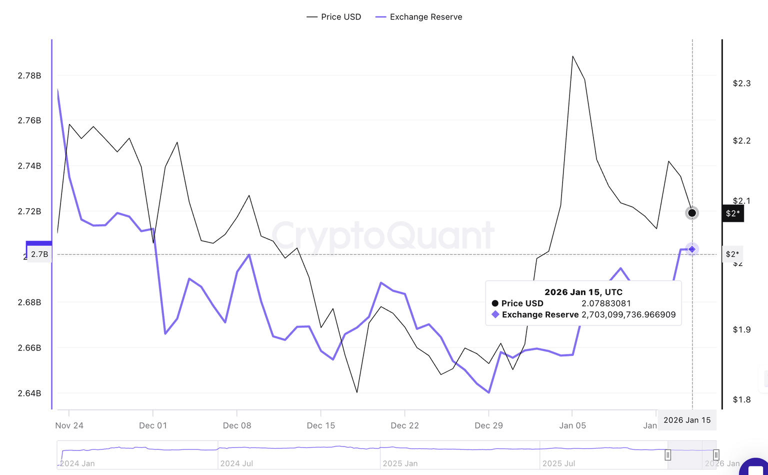 The number of XRP coins held across exchanges has increased to 2.7 billion as of Thursday, from 2.67 billion on Monday. Looking back, XRP exchange reserves stood at 2.64 billion on December 29, suggesting holders are transferring the tokens with the intention of selling when the price rises.